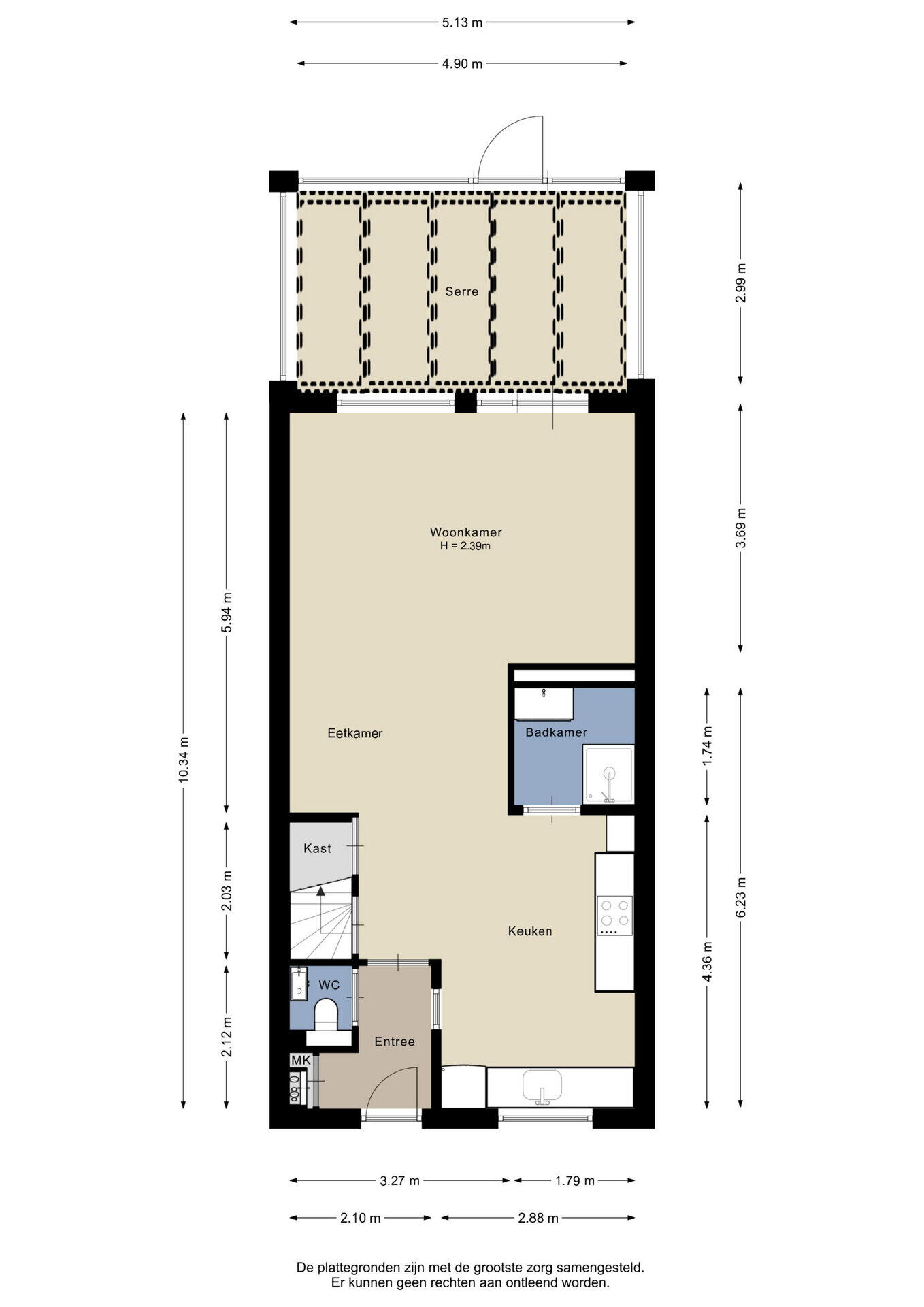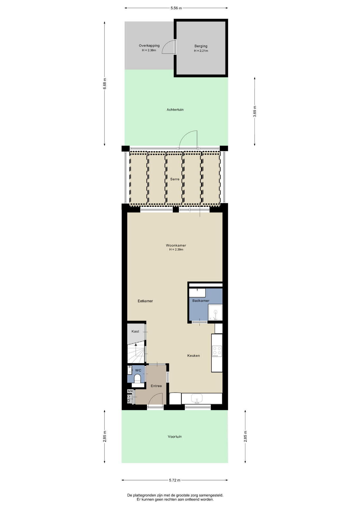 - 28 m² (6.6 meter diep en 5.5 meter breed)